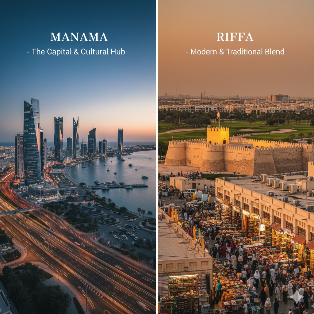 Manama serves as the capital and cultural hub, while Riffa is known for its mix of modern and traditional aspects — both worth visiting depending on your itinerary.