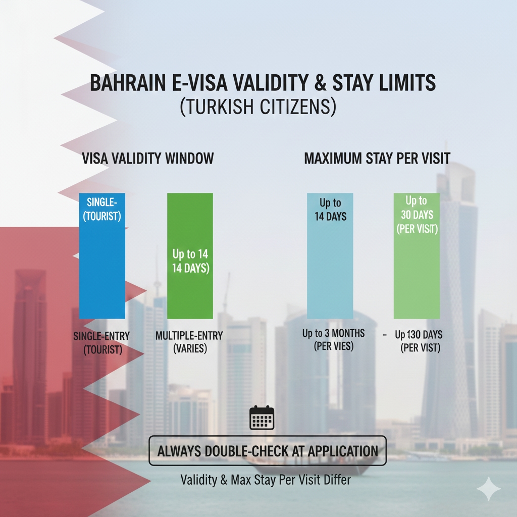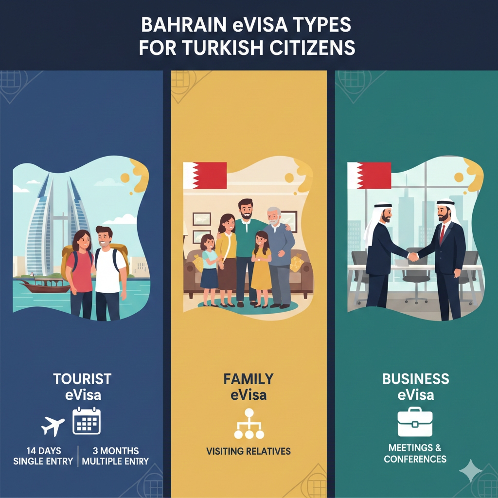 Whether you’re heading to Bahrain for sightseeing, business, or to meet friends and family — the Bahrain eVisa Requirements and Application Guide for Turkish Citizens aims to be your go-to resource. As a Turkish passport holder, you’re eligible for e‑Visa options (tourist, business, family) that offer flexibility: single or multiple entries, short or longer validity.