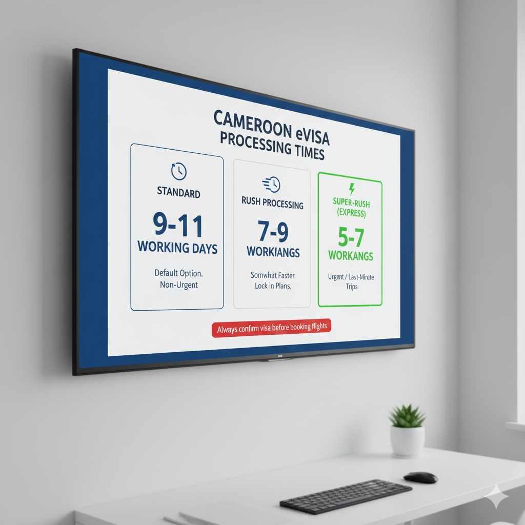 Processing times for eVisa applications, including a Cameroon urgent visa, vary depending on the service you choose (standard or faster options). Generally: