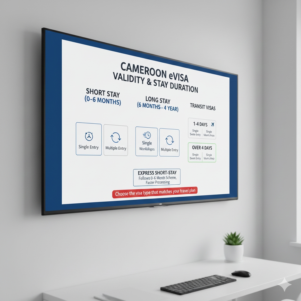 Depending on your travel plans — whether a short trip, a longer stay, multiple entries, or just a quick transit — Cameroon offers a variety of Cameroon eVisa types. Here are the common options:
