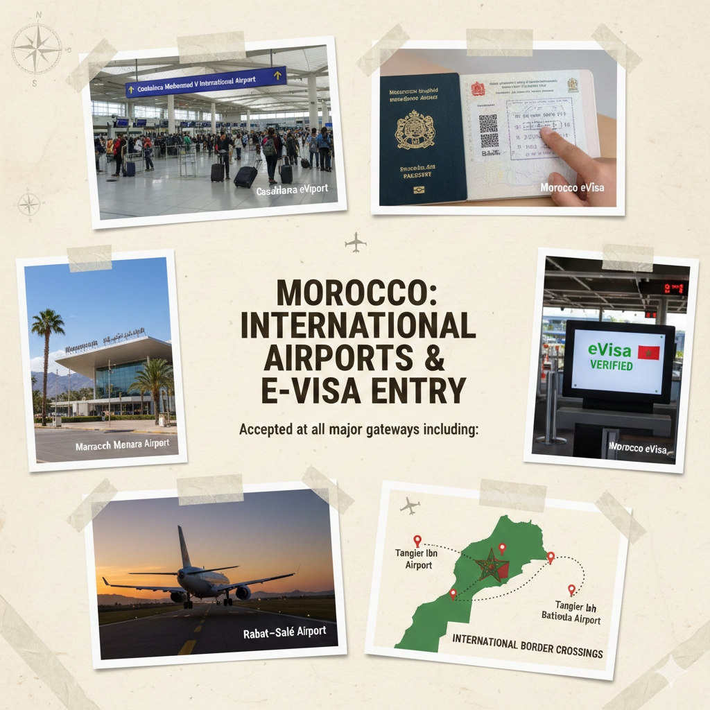 The Morocco eVisa is accepted at all major international airports in Morocco. It is essential to ensure your port of entry is an official international gateway.The eVisa is valid for entry at all international border crossings, including major air hubs such as:
